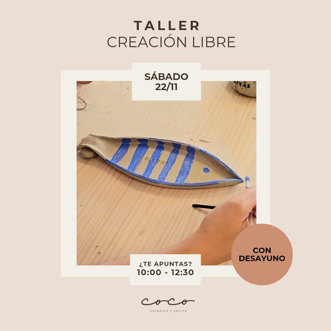 Cuando llega el finde, preparamos con mucho mimo talleres especiales donde la cerámica se da la mano con otras artes que nos encantan. Imagina pintar con acuarelas, crear tu propia vela aromática, disfrutar de un brunch delicioso, una cata de vino tranquila o sabores que te hacen viajar… Son ratitos pensados para que desconectes, aprendas algo nuevo disfrutando y compartas momentos bonitos contigo o en compañia